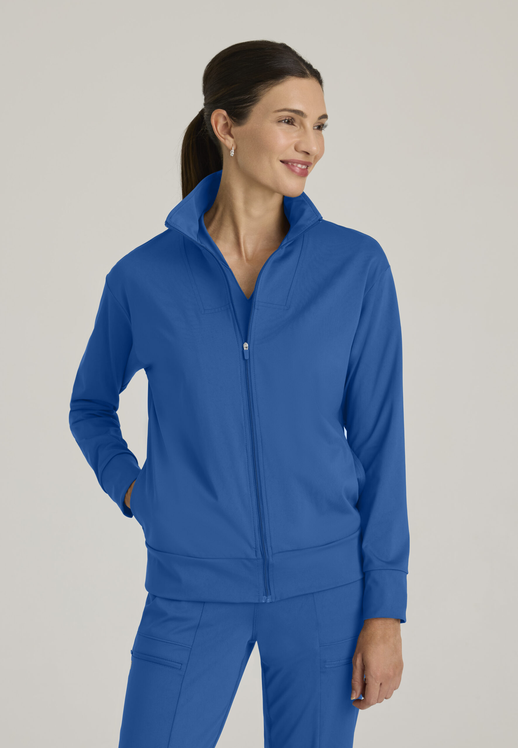 The Ease Knit Warm-Up Jacket – your ultimate companion for comfort and functionality! Featuring a stylish zip front collar with yoke and trendy drop shoulders, this jacket combines a modern look with thoughtful design. With four spacious pockets, including two on-seam front pockets, you’ll have plenty of room for your essentials.Crafted from 360 moisture-wicking Spandex Stretch, this jacket offers extreme comfort and flexibility, while the antimicrobial finish helps keep mold and mildew at bay.